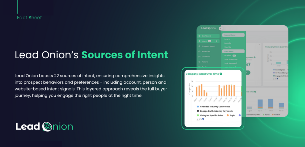Lead Onion boasts 20 sources of intent, ensuring comprehensive insights into prospect behaviors and preferences.
